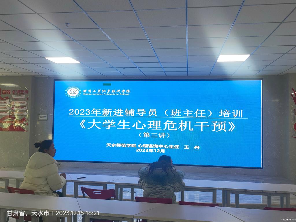 12月15日下午,学校2023年新任辅导员及班主任培训第三场辅导讲座在双创学院举行,学校2023年全体新进辅导员、新任班主任参加。