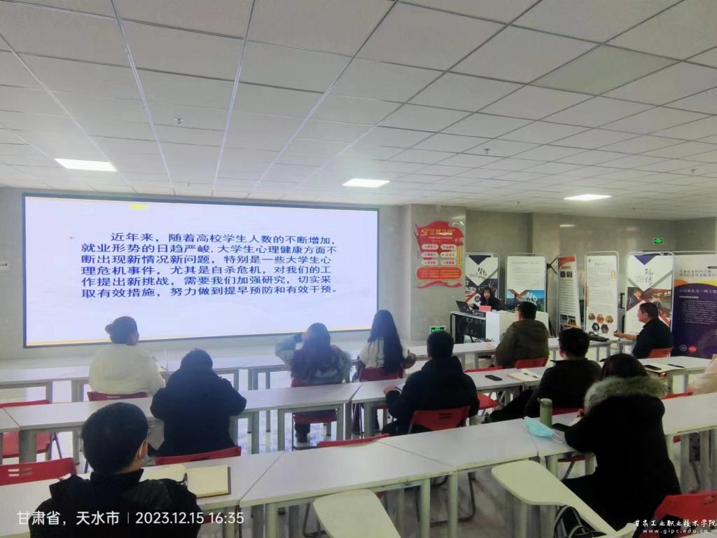 讲座邀请天水师范学院学工部学生心理教育咨询中心主任王丹以《大学生心理危机干预》为主题,围绕心理危机的概念与特点、导致大学生心理危机的原因及学校对心理危机的预防与干预三部分内容,结合丰富的实践经验和生动的实例,深入浅出地讲述了心理危机干预工作中的常见问题及处理方法。
