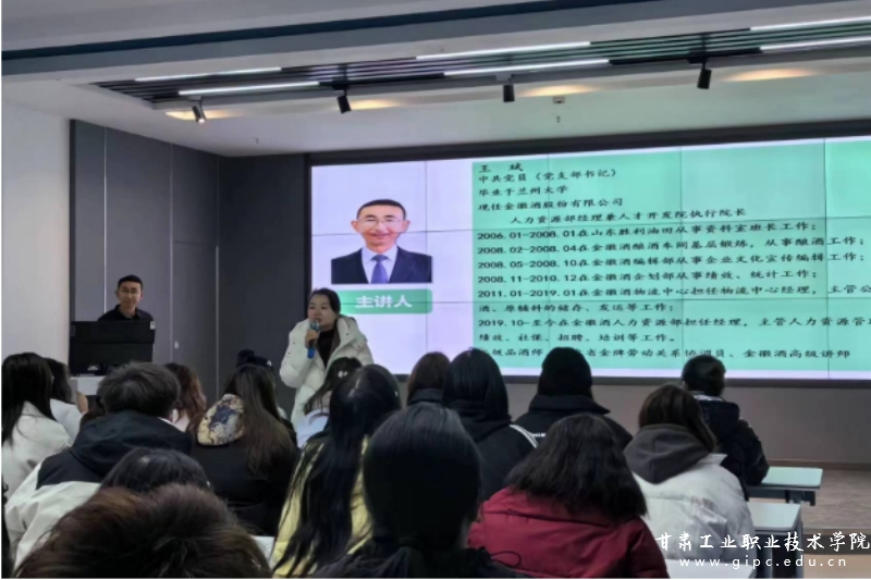 12月20日,金徽酒业集团人力资源总经理王斌一行到旅游学院进行校园宣讲,旅游学院2024届旅游管理专业、导游专业共计132人参加,活动由旅游学院院长曹瑞琴主持。