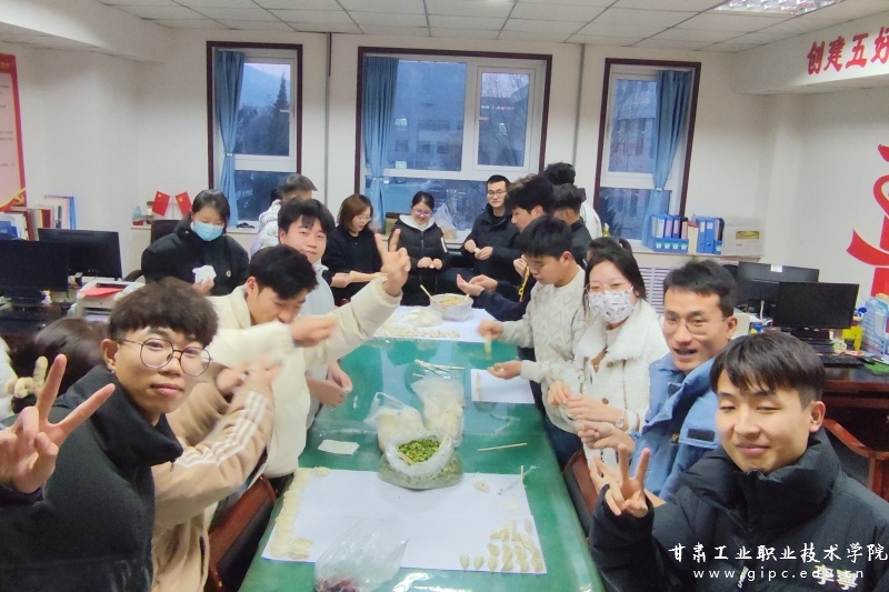 12月22日,电信学院组织开展“师生同包爱心饺,暖情共度冬至节”活动,辅导员与同学们一同度过了一个别具一格的冬至节。