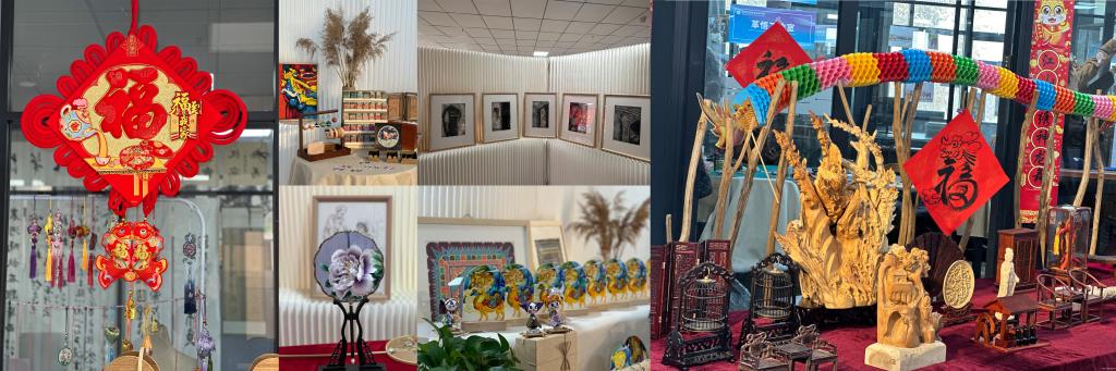 2023年12月29日,创新创业学院“非遗过龙年”迎元旦展会在创新创业学院三楼孵化园展出。活动吸引了众多师生前来参与,展出了布艺扎染、非遗刺绣、手工竹编、非遗木雕、非遗掐丝、皮具雕刻、彩陶六大系列为主的近300余件作品,全校共计200余人参加了活动。