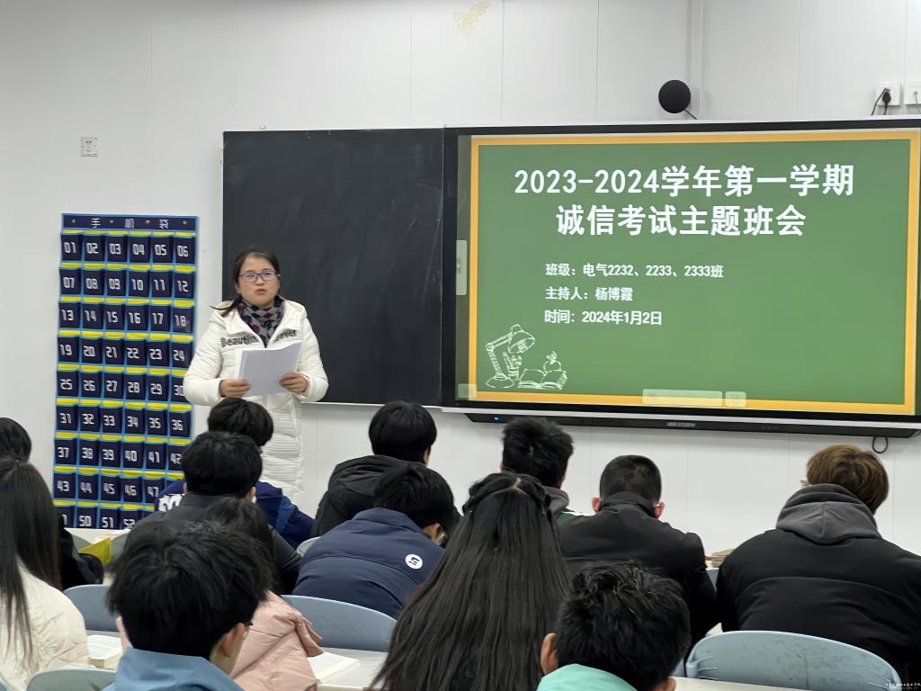 为全面落实和加强学院考风考纪,引导学生诚信考试,1月2日至3日,电信学院2022、2023级共31个班级召开“深化诚信教育,严肃考风考纪”主题教育班会。全体辅导员、班主任深入班级,引导学生以踏实端正、扎实认真的态度做好考前复习,严肃考风考纪,以充分的准备迎接考试。