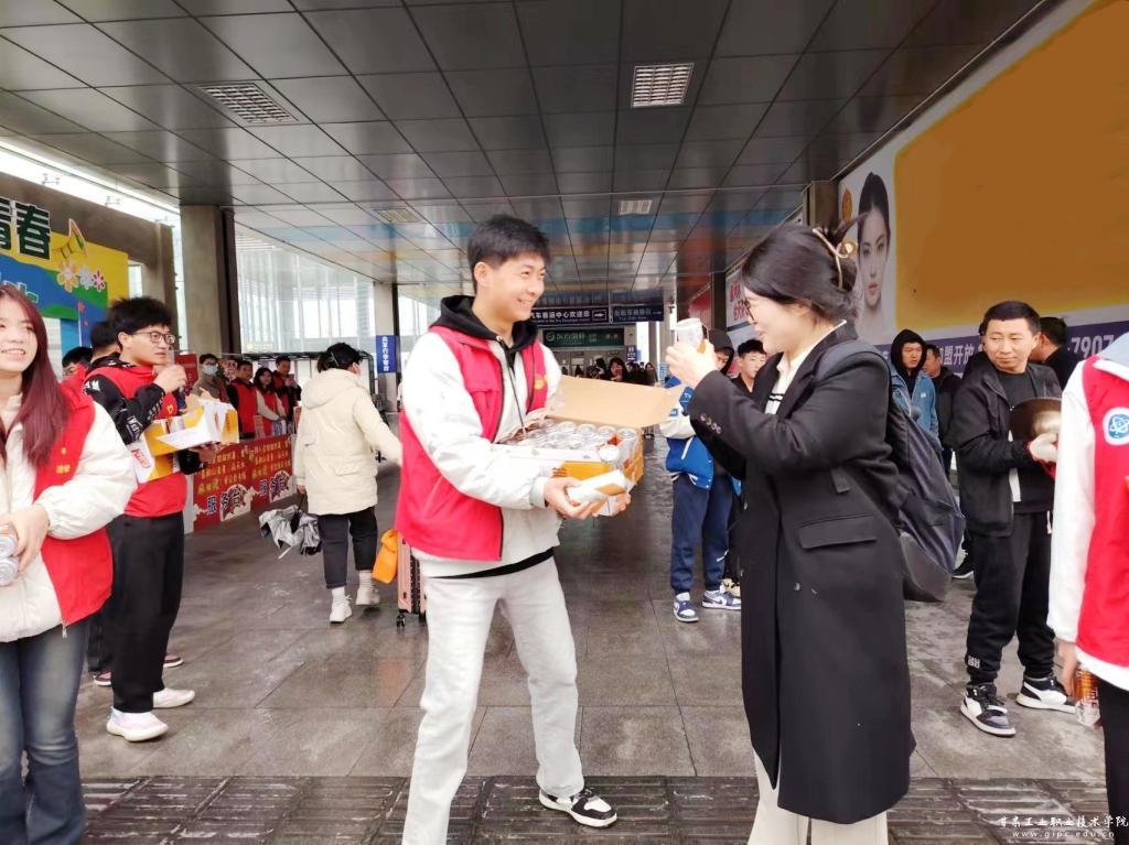 在人潮涌动的天水南站,测绘学院的志愿者们热情的为外地游客引导乘车路线、乘车方式,介绍天水旅游景点,温馨的为外地游客免费提供特产饮品。
