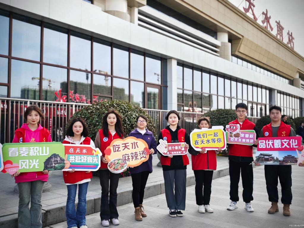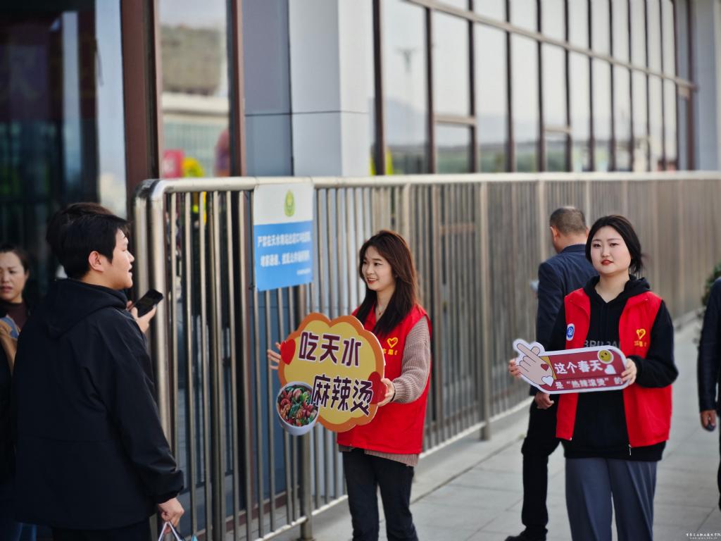 畅游陇原大地,品味如意甘肃。一碗滚烫的甘肃麻辣烫,以其独特的口感和风味,迅速成为全国人民舌尖上的“新宠”。为助力天水文化旅游产业发展,用心用情用力做好服务保障工作,电信学院积极响应号召,于3月22日组织青年志愿者前往天水南站开展志愿服务活动,助力“天水麻辣烫”。