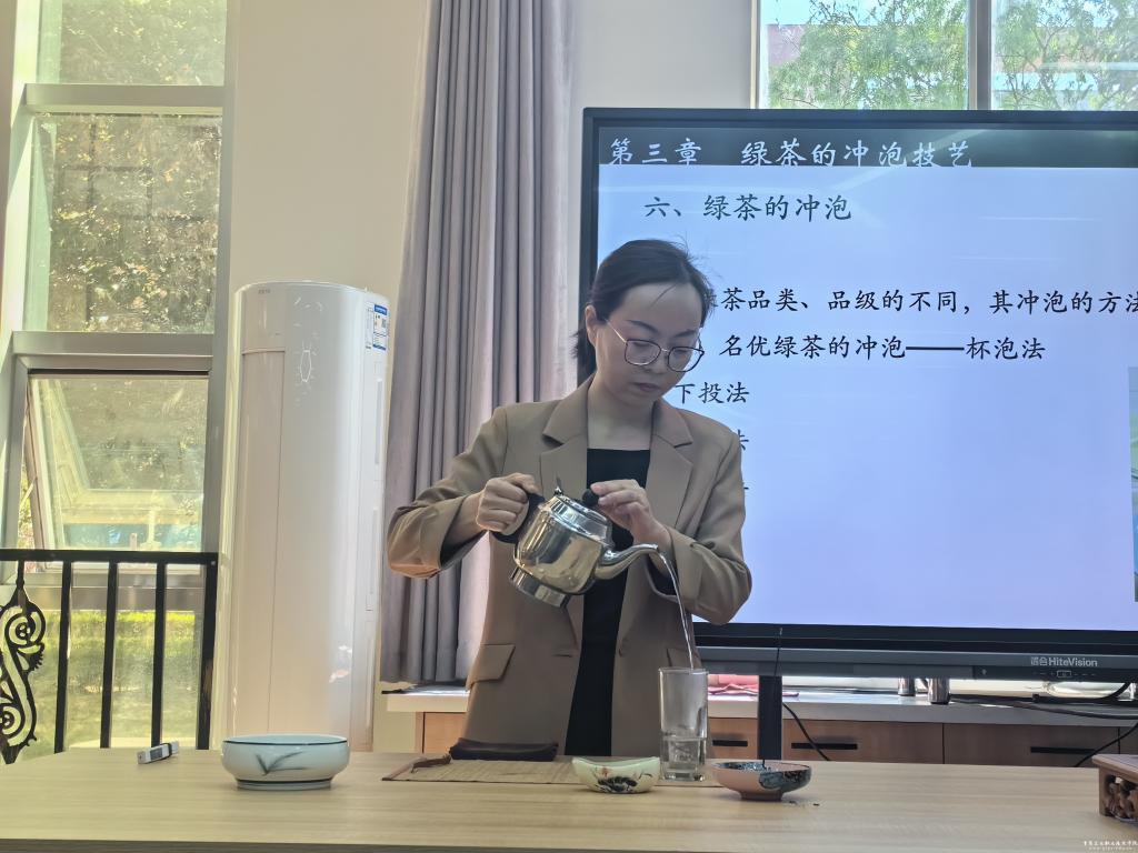 本次活动安排吴建华老师展示《绿茶的冲泡技艺》。吴建华从中国古老的茶文化谈起,详细介绍了绿茶的起源、种类及其在中国茶文化中的重要地位。吴老师边讲边展示了绿茶的冲泡流程和注意事项,整个操作流程行云流水、有条不紊。