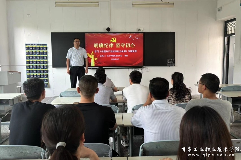 此次党课围绕新修订的《中国共产党纪律处分条例》内容,将党纪学习教育与化工学院实际工作紧密结合,帮助党员干部加深对《条例》的理解和把握。重点从“明确纪律,筑牢规矩意识;坚守初心,永葆党的本色;党纪学习教育与实际行动相结合,推动工作落实;初心教育与实际行动相结合,践行党的使命”等四个方面展开。