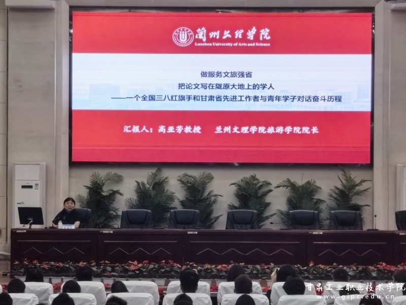 为深入学习贯彻习近平总书记对旅游工作的重要指示精神,大力弘扬劳模精神、劳动精神、工匠精神,帮助师生树立正确的劳动价值观和良好的劳动品质,5月23日上午,劳模宣讲团成员、全国三八红旗手、全国首批新时代中国旅游行业女性榜样人物、兰州文理学院旅游学院院长高亚芳到我校旅游学院,开展“劳模精神进校园 工匠精神永流传”主题座谈会和宣讲报告会。旅游学院全体教师以及300多名学生参会。