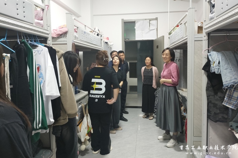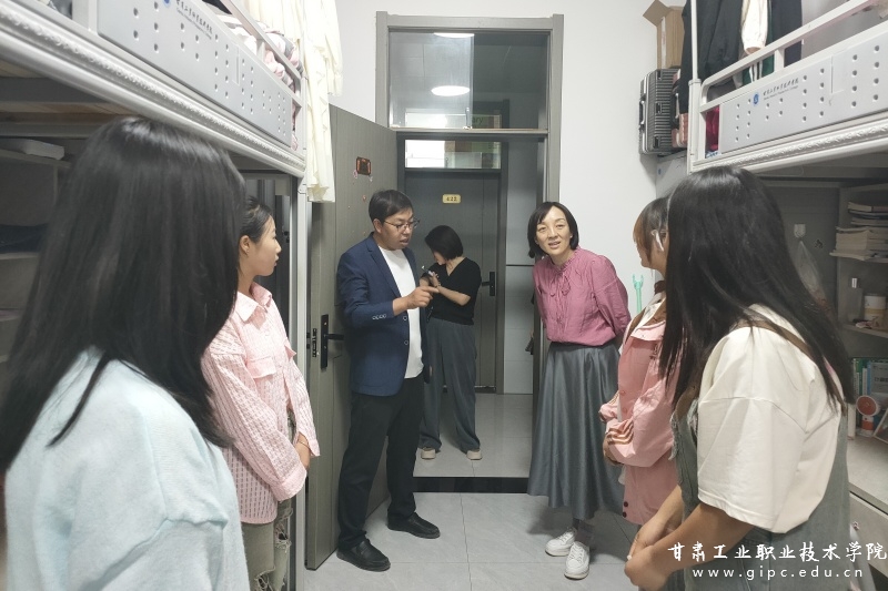 在学生宿舍,学院领导十分关心同学们的住宿安全和日常生活,同宿舍管理员进行了交流,了解了宿舍楼内安全、服务管理措施;并与学生亲切交谈,询问同学们的学习、生活情况,叮嘱他们要提高安全防范意识,注意安全用电。
