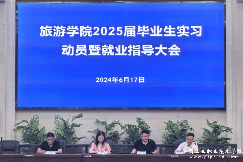 为扎实做好2025届毕业生实习工作,进一步引导学生充分认清实习的目的和重要意义,6月17日,旅游学院在图书馆智敏报告厅召开实习动员大会。学院班子成员、专业主任、班主任、相关指导老师、企业驻校教师及2022级学生参会,会议由旅游学院副院长安敏杰主持。