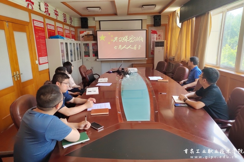 会议组织全体人员共同观看了全国地勘行业核技术应用产教融合共同体成立大会视频,通报了全省高等职业学校办学达标情况以及甘肃省“双高计划”建设绩效评价结果,学习了《甘肃工业职业技术学院教职工考勤管理办法》,并结合党纪学习教育活动,开展了保密宣传教育。同时,就近期学生离校实习等重点工作进行了安排。