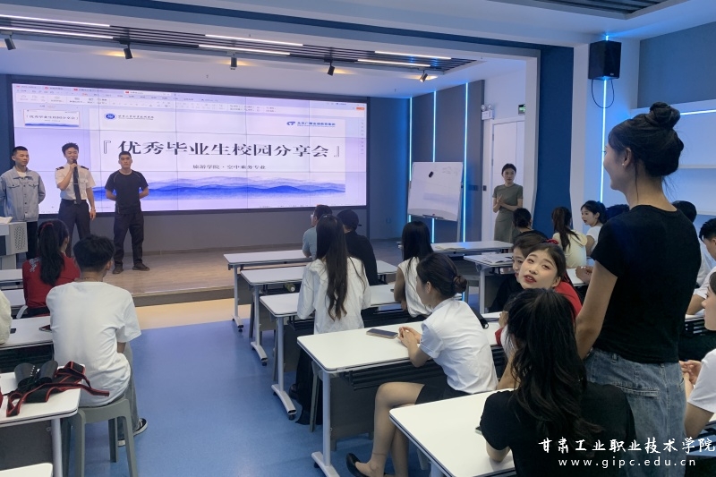 为提升就业率,帮助在校生更好地规划职业生涯,7月1日下午,旅游学院空中乘务、高速铁路客运服务专业成功举办了一场“优秀毕业生校园分享会”。旅游学院副院长安敏杰,北京广慧金通教育集团驻甘肃工业职业技术学院工作处老师刘涛涛、董洁、贾秀玲、张吉玮以及空中乘务、高速铁路客运服务专业学生代表参加。