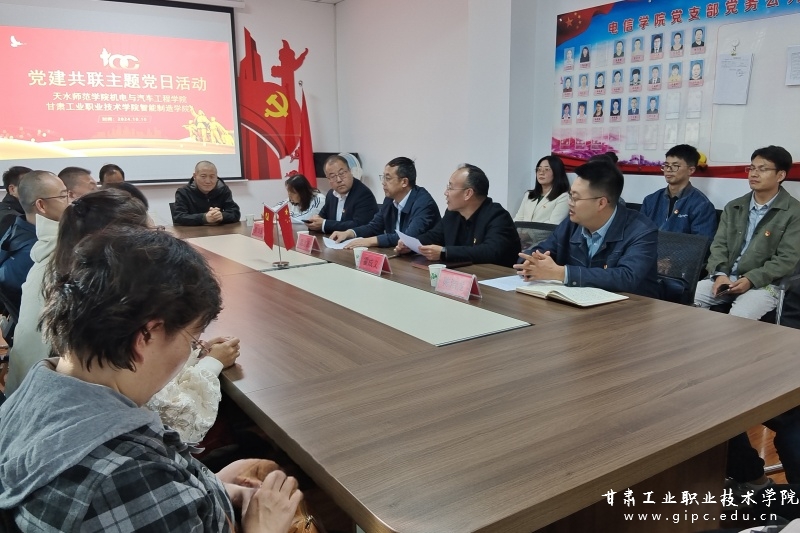 活动中,天水师范学院机电与汽车工程学院党委书记温志贤领学了习近平总书记在甘肃考察时的重要指示精神。天水师范学院机电与汽车工程学院院长罗海玉和我校智能制造学院党总支副书记、副院长陈浩龙分别介绍了各自学院的办学历史、办学特色和党建工作情况,分享了在党的建设、政治学习、人才培养、产教融合等方面的经验和做法。