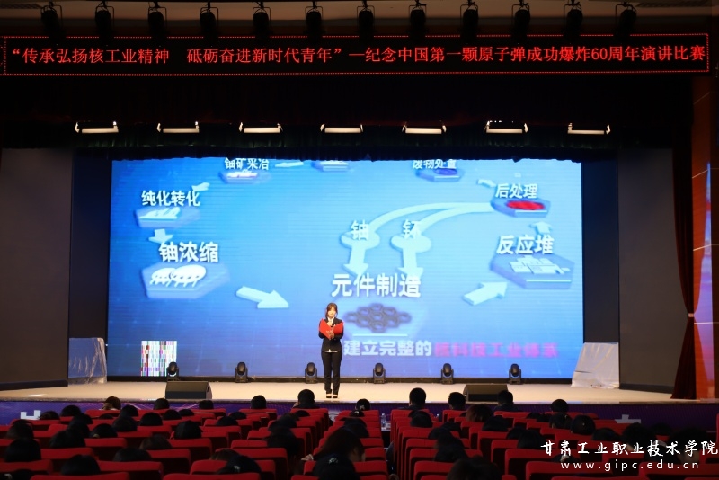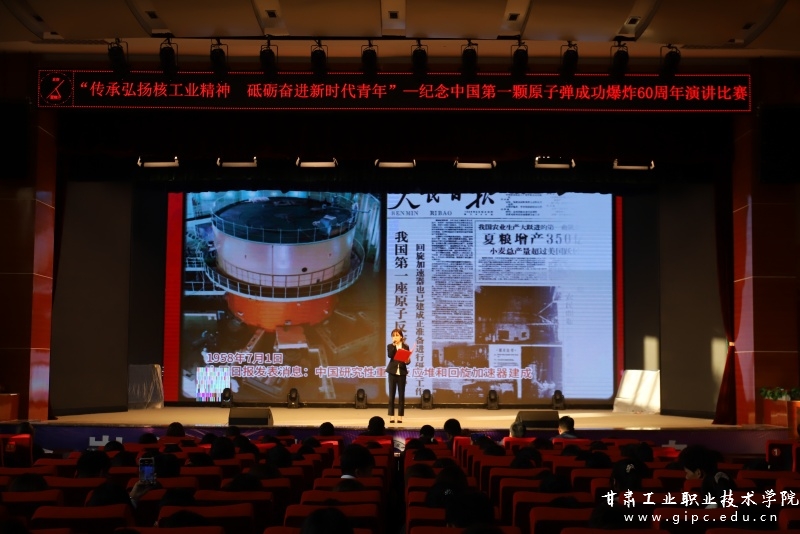 为庆祝新中国成立75周年,纪念中国第一颗原子弹爆炸成功60周年,进一步传承和弘扬“两弹一星”精神,10月23日,我校“传承弘扬核工业精神 砥砺奋进新时代青年”——纪念中国第一颗原子弹爆炸成功60周年演讲比赛在大学生活动中心举行。