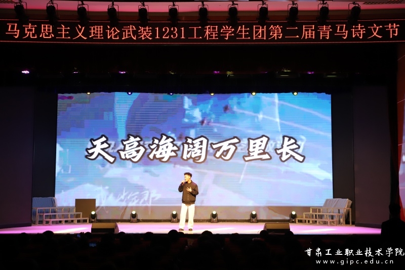 为弘扬红色文化,传承红色基因,营造和融竞进的校园文化氛围,展现工院学子和“1231”工程学生博雅灵动、积极向上的青春风貌,11月16日晚,由“1231”工程学生团主办的第二届“青马”诗文节活动在大学生活动中心举行,一场以爱国为主题的文化盛宴在此激情上演。团委及马克思主义学院教师、全校800余名学生共同参与,现场气氛热烈,展现出浓厚的红色文化氛围。