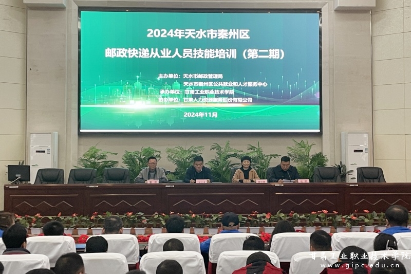 11月20日,天水市秦州区快递行业从业人员岗位技能培训(第二期)在我校顺利开班。天水市邮政管理局党组成员、快递行业党委副书记安志春、经管学院党总支副书记、副院长董珍慧以及甘肃省邮政速递物流公司天水市分公司、兰州顺丰速运有限公司天水分公司、甘肃京邦达供应链科技有限公司天水分公司、天水中速通商贸有限公司等四家快递公司的快递员共计100余人参加开班仪式。