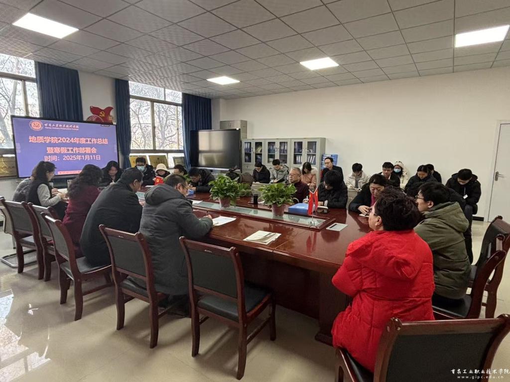 党总支书记何吉有作2024年学院工作年终总结讲话并部署2024年寒假工作,学院领导班子、全体教职员工参加会议。