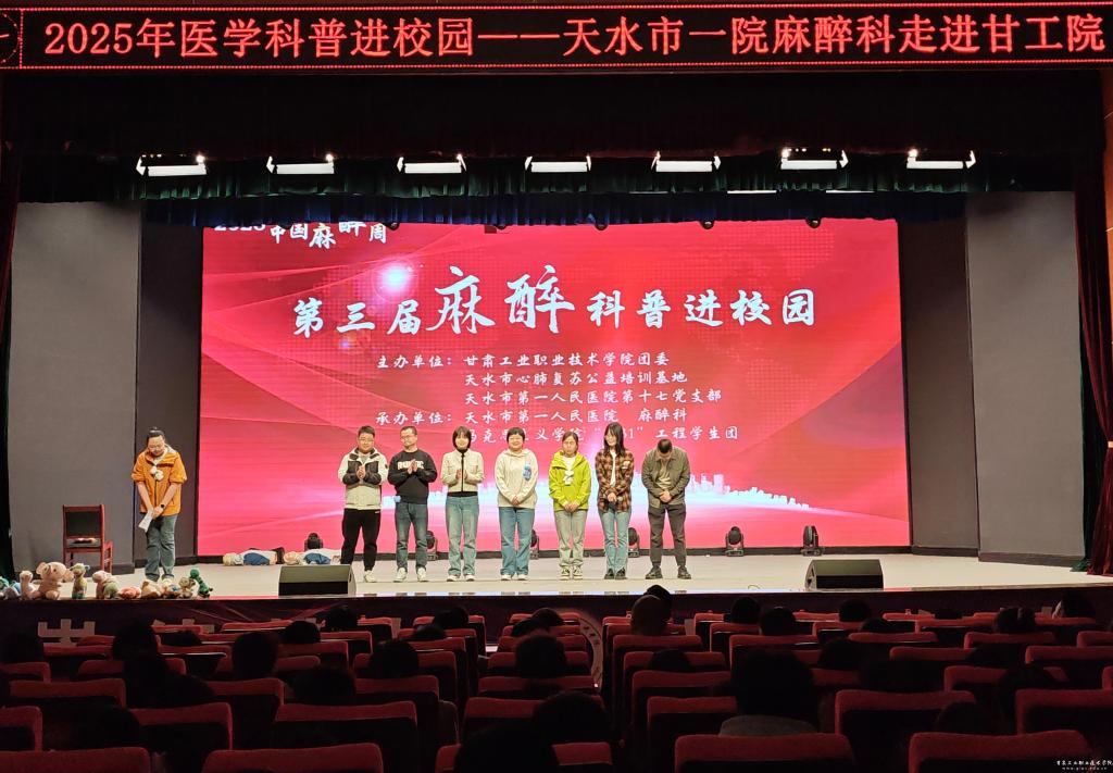 为进一步提升青年健康素养,增强学生的自我保健意识,3月26日,我校团委联合天水市第一人民医院共同开展了“2025年中国麻醉周第三届科普进校园”活动,通过理论科普与实操演练相结合的形式,为全校700余名师生带来专业系统的急救知识培训,着力提升青年群体健康素养与应急处置能力。