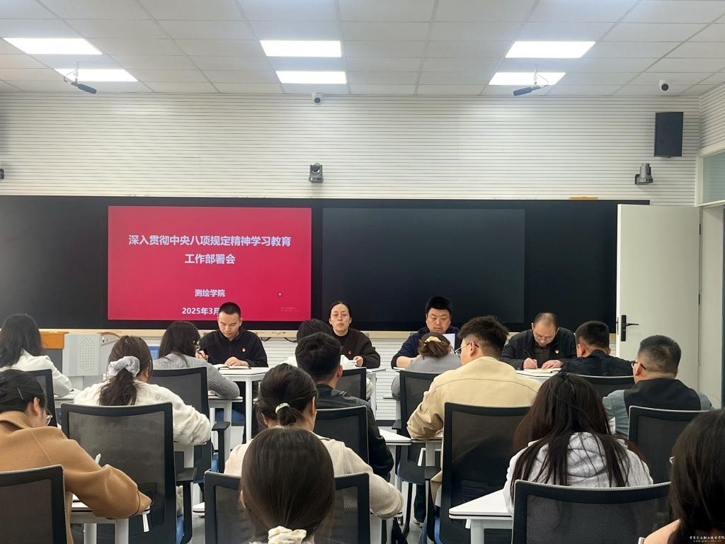 会上,杨爱琴传达了《甘肃工业职业技术学院开展深入贯彻中央八项规定精神学习教育工作方案》精神。会议指出,中央八项规定是新时代全面从严治党的鲜明标志,是推进作风建设常态化长效化的重要遵循。测绘学院高度重视本次学习教育工作,要求全体教职工以高度的政治自觉、思想自觉和行动自觉,切实把中央八项规定精神学深悟透、落到实处。会议强调,全体教职工要进一步提高政治站位,深刻认识贯彻中央八项规定精神的重要意义,坚决杜绝形式主义、官僚主义,严防“四风”问题反弹回潮。