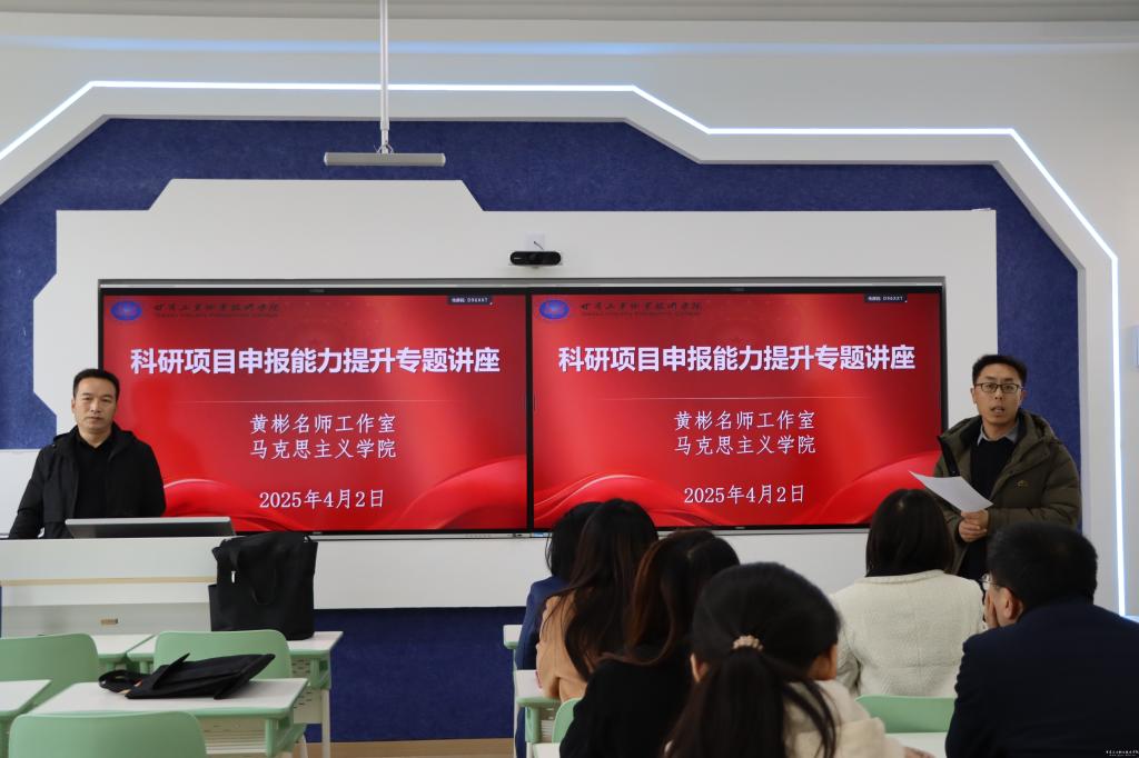 为进一步提升全体教师的科研素养与创新能力,切实增强教师开展科学研究的内生动力,4月2日下午,我校黄彬名师工作室联合马克思主义学院在2号教学楼601教室成功举办本学期思政大讲堂第三讲,甘肃政法大学赵军魁教授受邀作专题报告,以“积极申报科研项目 让你飞得更高”为主题。马克思主义学院副院长王军主持报告会,马克思主义学院全体思政课教师、相关职能部门和二级学院的科研骨干、天水市实验小学部分思政课教师等人员参加。