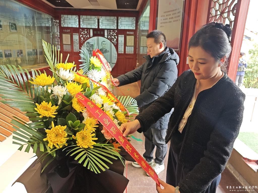在庄严肃穆的邓宝珊将军纪念馆前,师生列队肃立,举行祭扫仪式。学生代表敬献花篮、教师代表整理缎带,全体人员默哀致敬,深切缅怀将军的爱国精神与历史功绩。这一庄严的仪式,提醒我们铭记历史,传承精神,勇担时代使命。