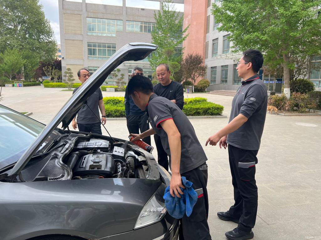 为强化技能转化,活动特别设计“师生车辆养护实践”环节,以练促学,匠心服务反哺校园,在奥迪技术团队指导下,学生分组对学校教师的私家车进行免费检测与基础保养。