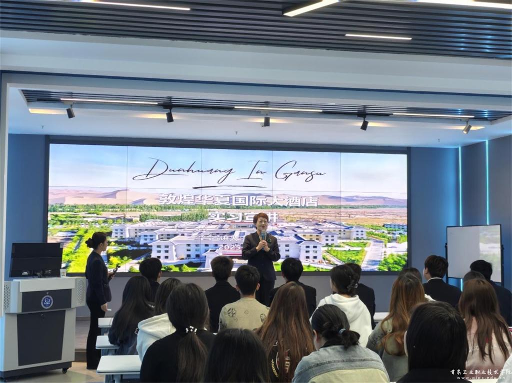 作为学院长期合作伙伴,天水麦积山温泉旅游大酒店率先展开宣讲。企业代表通过详实的职业发展通道展示和员工福利体系解读,生动描绘出温泉度假产业的职业蓝图。兰州盛达希尔顿酒店以“西北旗舰店”的独特定位吸引目光,宣讲人通过诙谐的互动方式,将国际酒店集团的培养体系与本土发展机遇巧妙融合。敦煌华夏国际大酒店则依托“沙漠生态主题酒店”特色定位,向学子们展示了文旅融合背景下的职业发展新机遇。