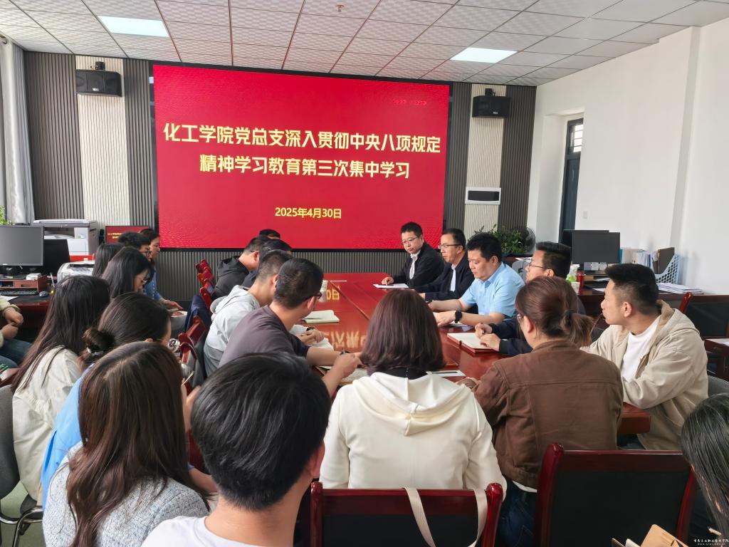 4月30日下午,化工学院党总支开展深入贯彻中央八项规定精神学习教育第三次集中学习活动。化工学院全体党员参加会议。