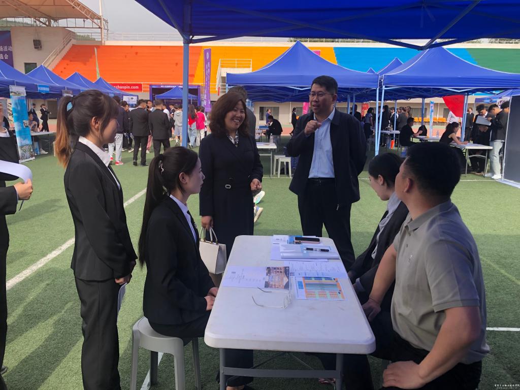 旅游学院党总支书记康爱霞、院长李玉林与企业代表和求职学生亲切交谈。他们对企业长期以来对学院人才培养工作的支持表示感谢,希望校企双方能够通过深化合作,在人才培养、实习就业等方面取得更多成果;同时鼓励同学们抓住机会,积极展现自身优势,找到心仪的工作岗位。