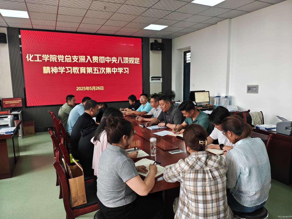 5月26日下午,化工学院党总支开展深入贯彻中央八项规定精神学习教育第五次集中学习会议。化工学院全体党员参加。