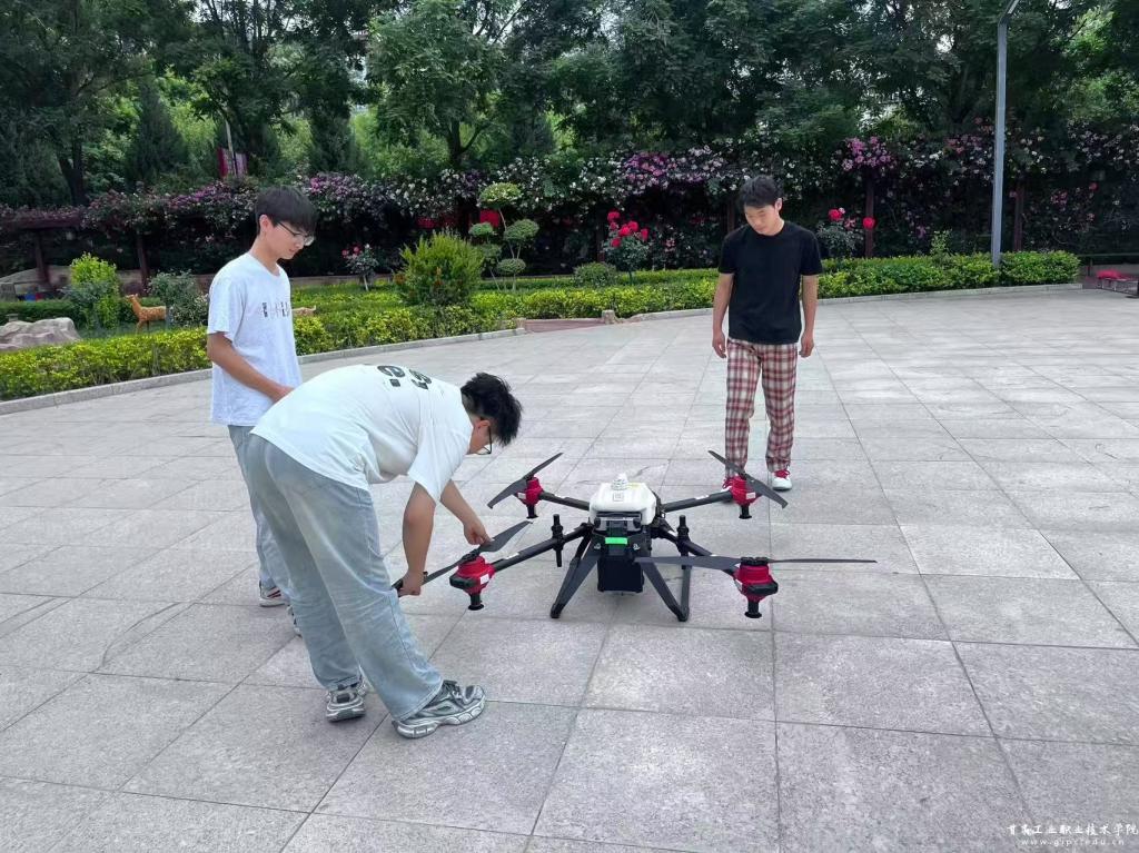 在作业现场,测绘学院师生团队通过搭载RTK(实时动态定位)模块的四旋翼无人机,将测绘学科融入植保作业,实现精准喷洒定位,解决了夏季病虫害防治的人力短缺问题。活动当天,测绘学院5名学生参与了数据采集、航线调试与飞行监控工作。