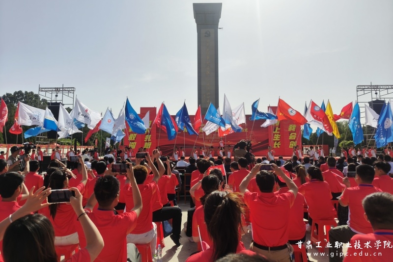 在全场热烈的掌声中,“青年红色筑梦之旅”的学生代表举行了庄严的授旗仪式。