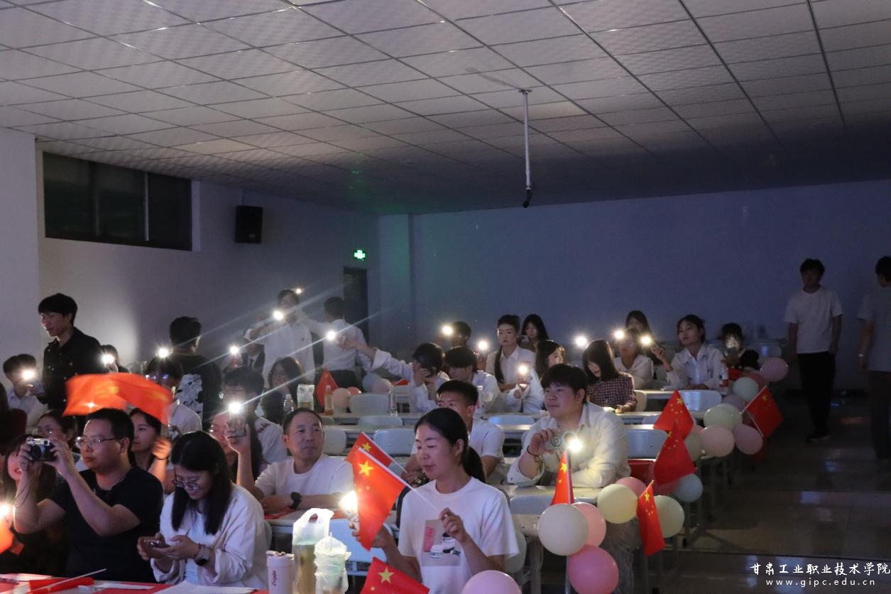 当乐队弹唱《我爱你中国》的旋律响起时,将整场活动推向了最高潮。激昂的节奏、深情的歌词,感染着在场的每一个人。台上师生怀抱赤诚纵情弹唱,众心潮澎湃自发加入,激昂歌声汇成一片深情的海洋。手中挥舞的五星红旗如炽热的信念在会场翻涌不息,真挚的爱国热情在每一句歌词、每一次挥臂中激荡传递,现场气氛热烈而庄重,爱国之情在每个人心中澎湃涌动。
