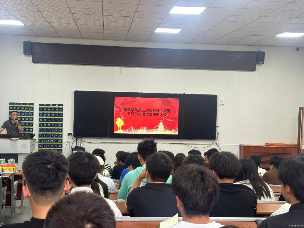 为进一步加强学生宿舍管理,营造安全、文明、整洁、和谐的住宿环境,表彰先进、督促后进,建筑学院于6月6日下午在东阶梯教室召开全体宿舍长工作会议暨5月份文明宿舍表彰大会。建筑学院相关领导班子、全体辅导员、各楼层安全员及全体宿舍长参加。