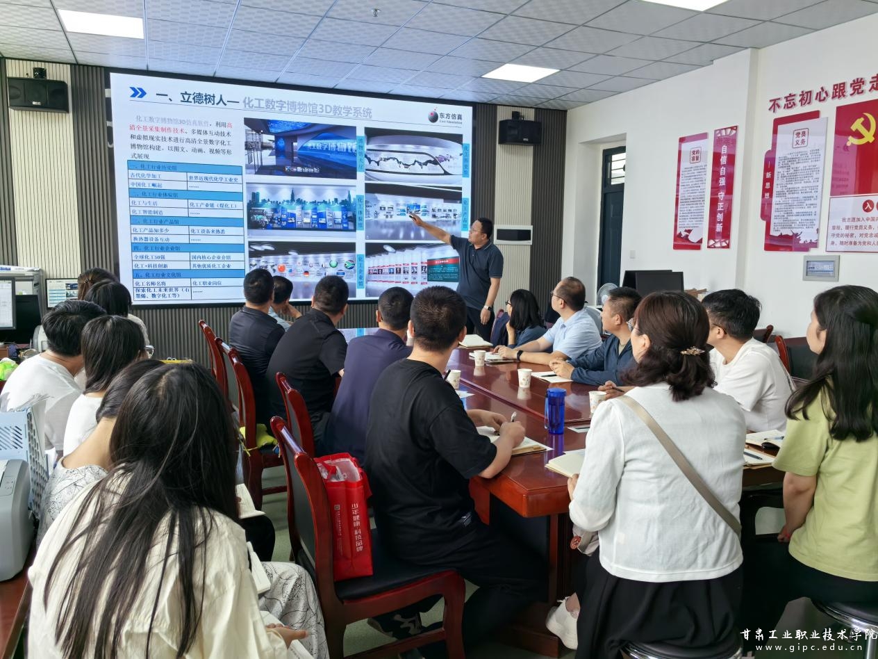 为深化专业核心课程教学改革、进一步推动教育数字化转型,切实提升课程教学质量与实践育人水平,7月4日,化工学院邀请东方仿真科技(北京)有限公司相关人员来校,就化工与环境核心课程建设工作展开深入交流与探讨。化工学院院长张宏主持会议,全体教职工参会。