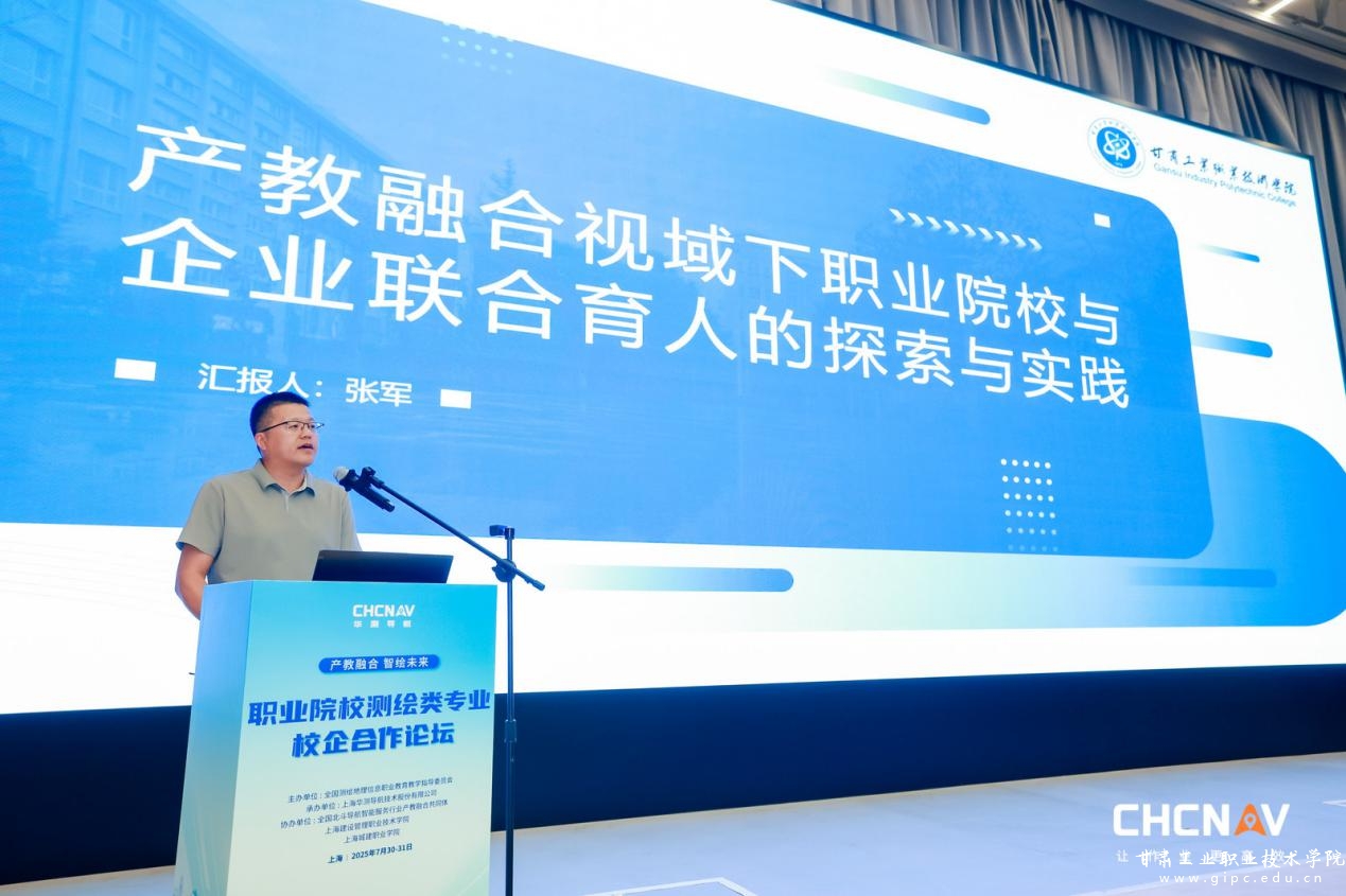 我校测绘学院院长张军教授以《产教融合视域下职业院校与企业联合育人的探索与实践》为题作专题报告。报告分享了我校与三和数码测绘地理信息技术有限公司多年校企合作的成功经验和实践成果,展现了校企合作的多重价值、各项创新技术对提升实训教学质量中的重要作用,获得与会代表的高度评价。