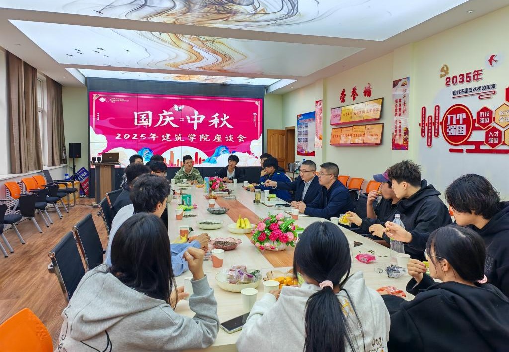 10月4日,建筑学院在党员活动室组织召开国庆、中秋留校学生座谈会。建筑学院党总支书记谢延友、院长闫积刚与20余名留校学生代表围坐一堂,以月饼、水果为媒,共叙家国情怀,传递节日温暖。