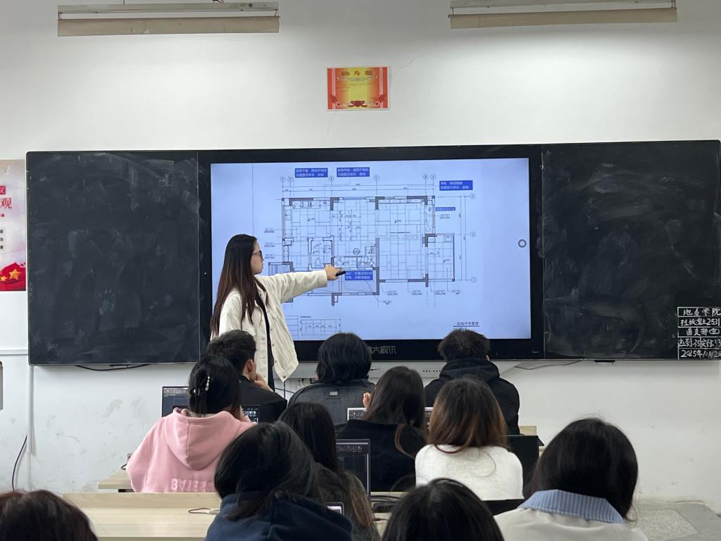 课堂上,蔡思甜老师围绕装饰工程施工图纸的核心要点展开教学,通过“图纸规范解读+案例实操分析”的方式,结合实际装饰工程案例,详细讲解了施工图纸的识读技巧、尺寸标注规范及与施工环节的衔接逻辑。她注重与学生互动,通过现场提问、小组讨论等形式引导学生主动思考,帮助学生快速掌握从图纸理解到实际应用的关键能力,课堂氛围活跃,教学目标达成度高。