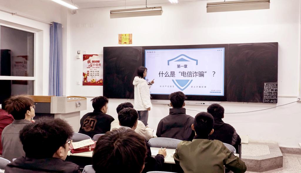 班会重点强调了“五不”原则:不轻信、不贪利、不随意点击链接、不泄露个人信息、不轻易转账,提醒大家在日常生活中要提高警惕,擦亮眼睛,拒绝诈骗;此外,辅导员还结合近年来发生的典型校园安全事件,如电信诈骗、校园欺凌等,生动阐释违法犯罪的严重后果,并通过播放警示教育视频,进一步增强学生的法律意识和自我保护能力。