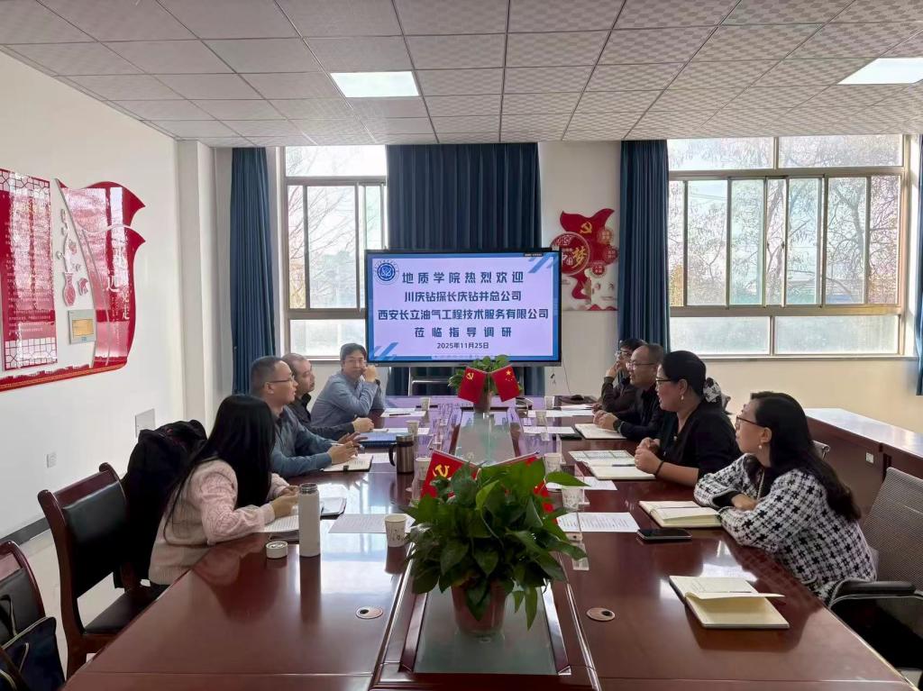 2025年11月25日,川庆钻探工程有限公司长庆钻井总公司人力资源部主管闫领群和西安长立油气工程技术服务有限公司人事部经理王燕一行到访地质学院,围绕实习基地共建、“订单班”人才培养等议题开展交流座谈。学院领导班子热情接待了来访嘉宾。