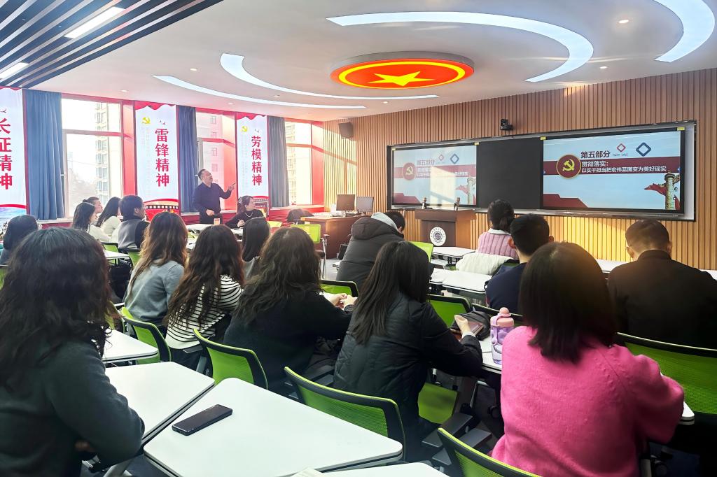 12月10日下午,公共课教学部在马克思主义学院虚拟仿真实训室召开专题学习会,深入学习贯彻党的二十届四中全会精神,并结合课程思政建设开展教学研讨。部门全体教师参加学习。
