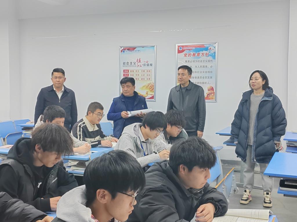 随后,学院领导走进晚自习教室,实地察看学生学习状态,并向值班教师了解管理细节。