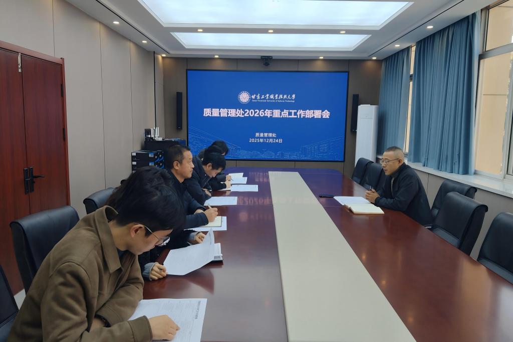 12月24日下午,质量管理处在行政楼三楼会议室组织召开2026年重点工作部署会,全面总结2025年工作,系统谋划新一年任务。会议由质量管理处处长薛亚宏主持,部门全体人员参加会议。