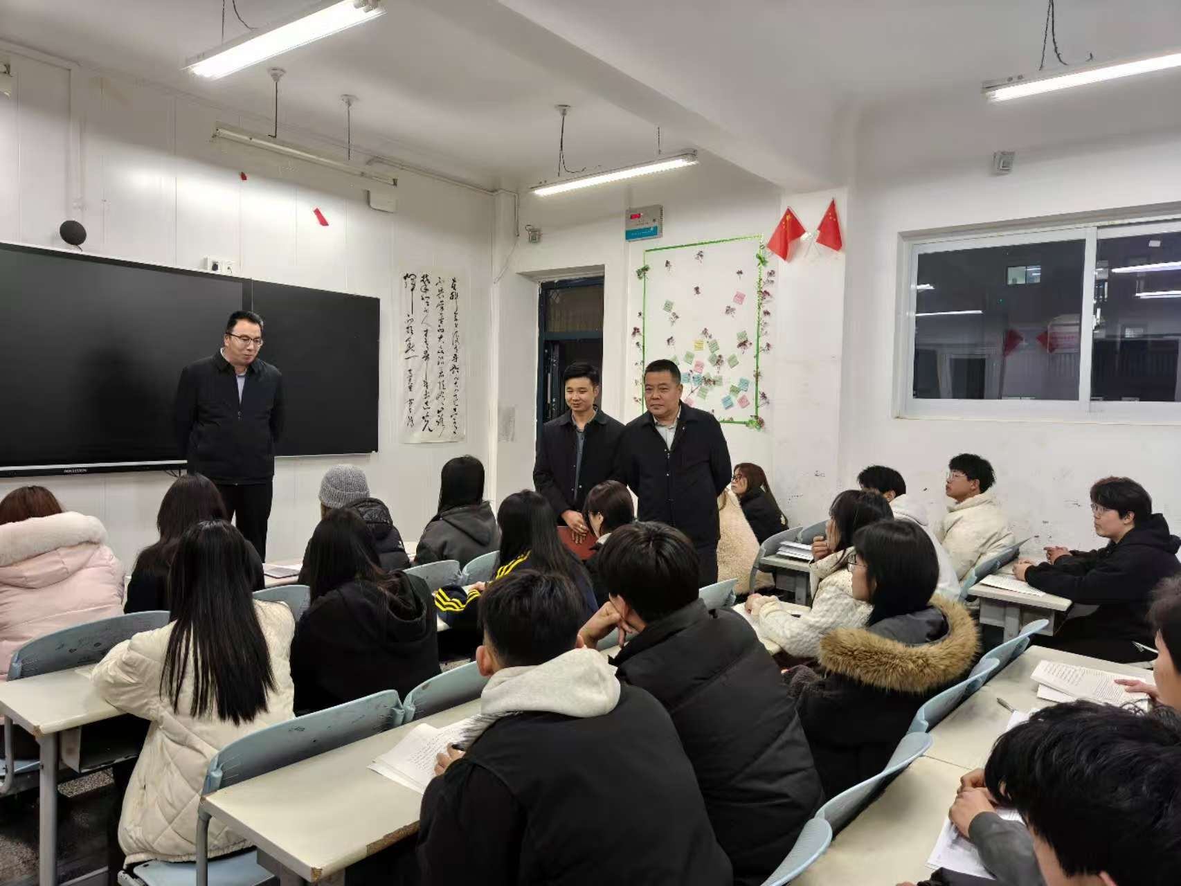院领导一行走进各年级教室,询问学生身心调整、课程适应及专业课预习情况,叮嘱学生收心归位,适应新学期节奏,珍惜学习机会,夯实专业基础。
