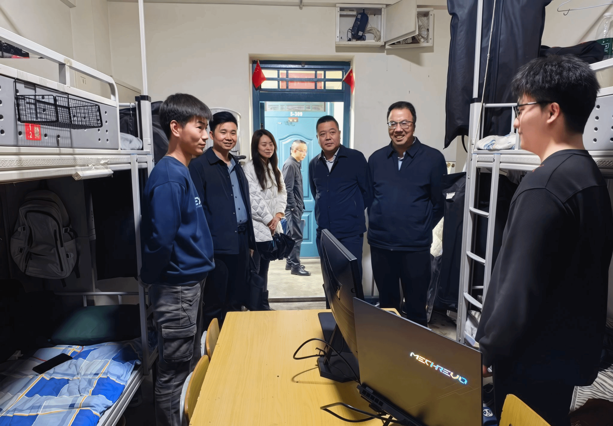 在学生公寓,院领导查看了住宿环境,检查了安全隐患,仔细倾听学生困惑与建议。交流中,院领导对学生提出期望:一是坚守初心,明确目标,成为高水平应用型化工人才;二是严于律己,笃行不怠,传承化工精神;三是心怀感恩,勇担使命,融入国家化工产业发展。