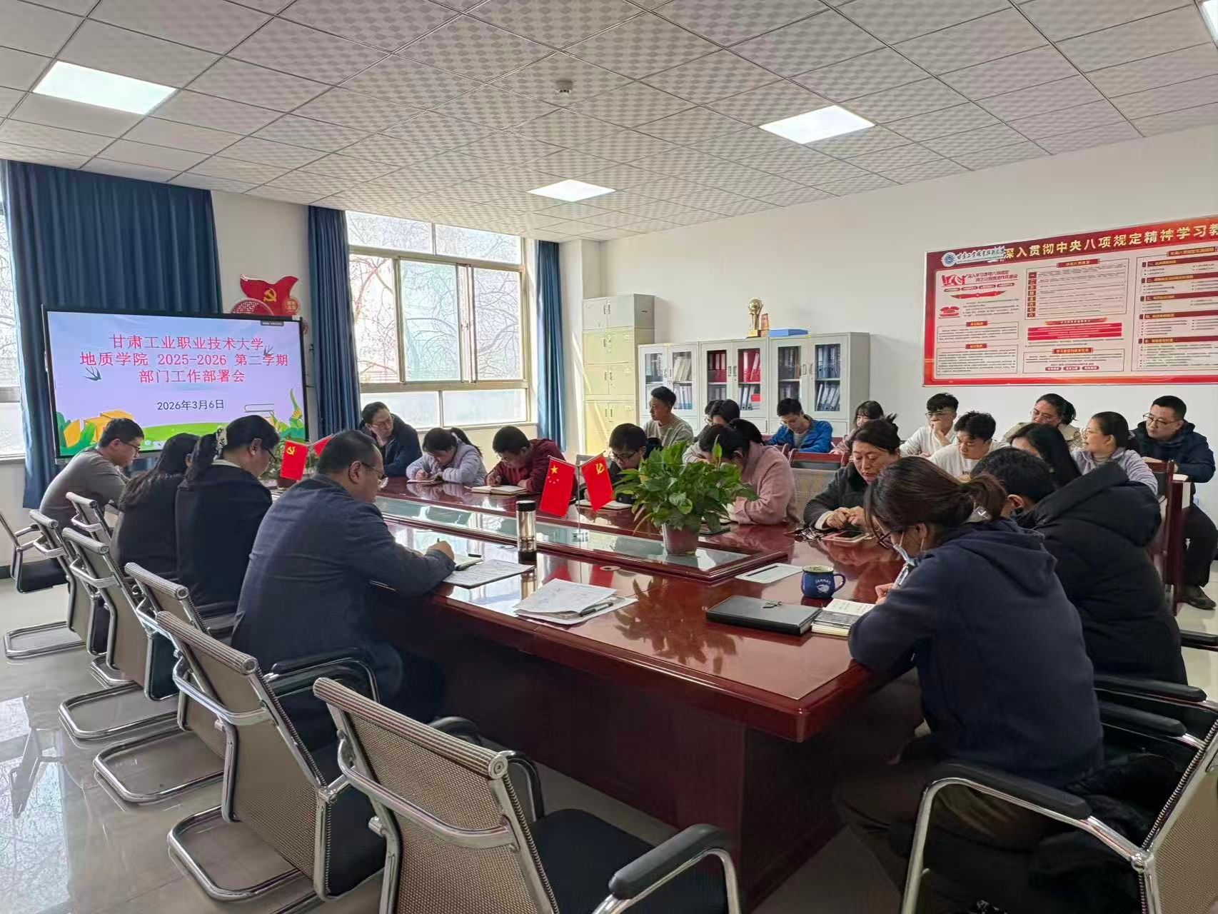 3月6日,地质学院召开新学期部门工作部署暨首次全体教职工大会。学院领导班子成员及全体教职工参加。