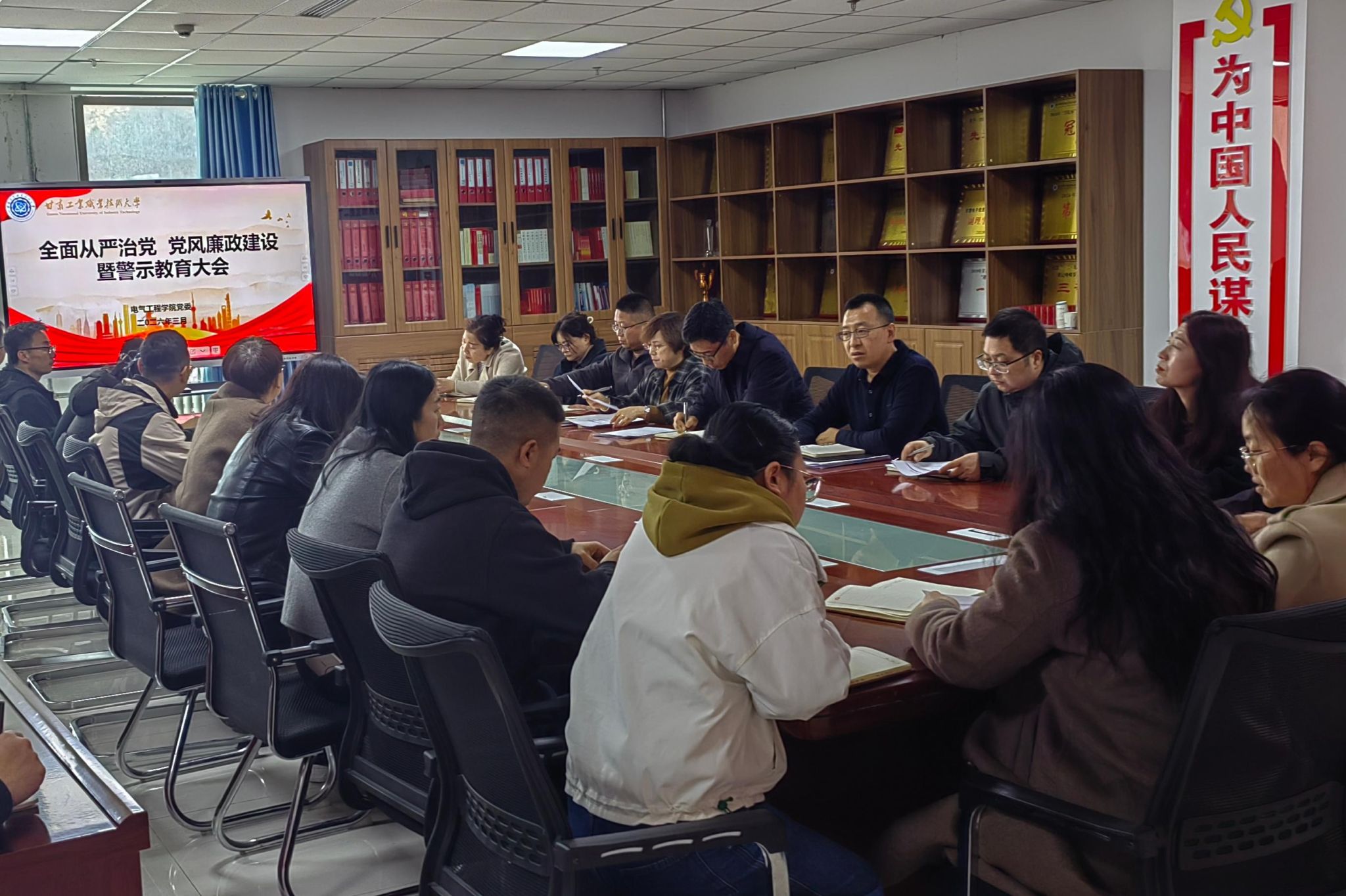3月25日,电气工程学院召开全面从严治党暨警示教育大会。全体教职工参加会议。