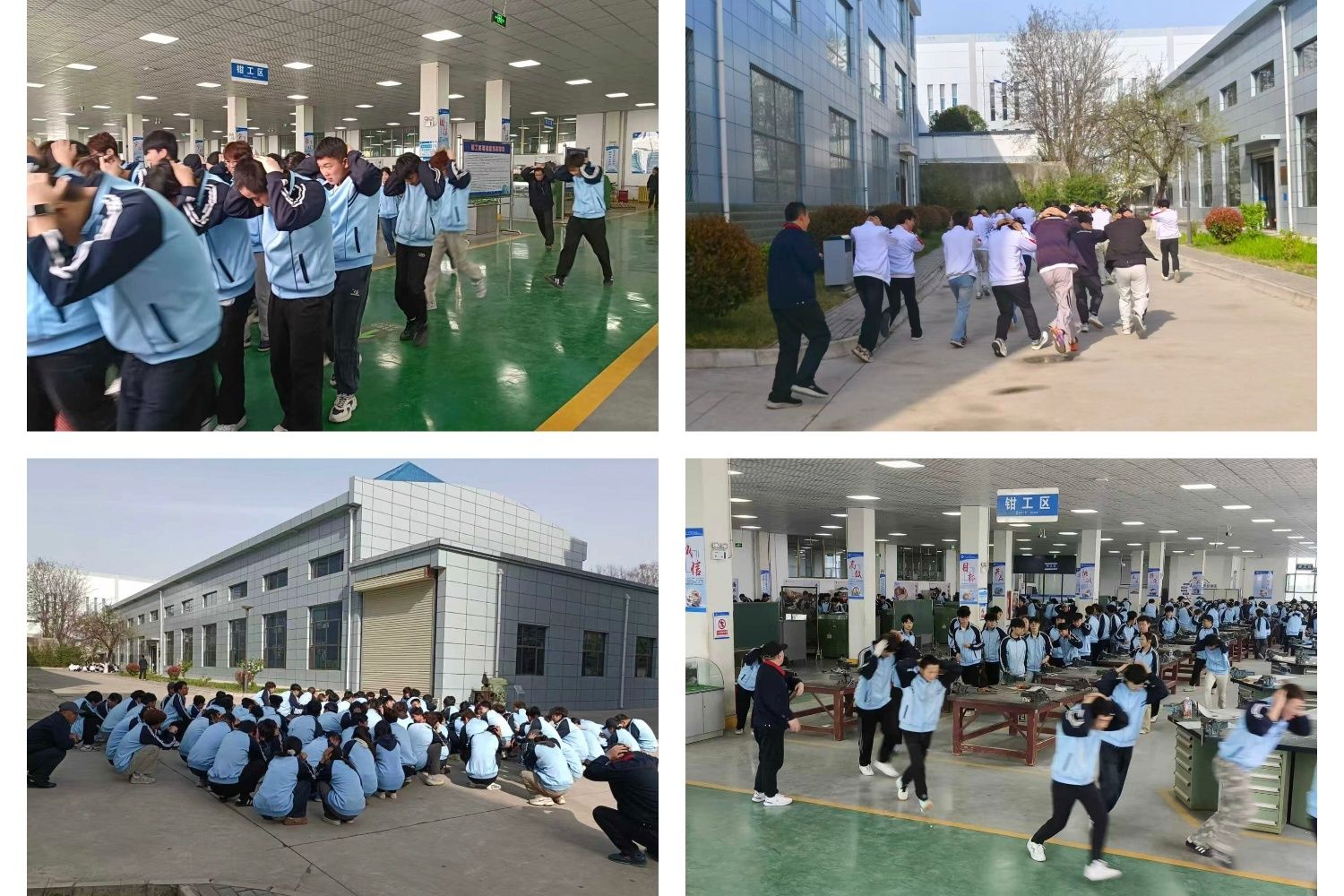 上午9时,随着演练哨声响起,金工实训基地、特种加工实训基地各实训教师迅速响应,有序组织237名学生从安全出口快速撤离至指定安全区域。整个疏散过程仅用时21秒,达到预期目标。