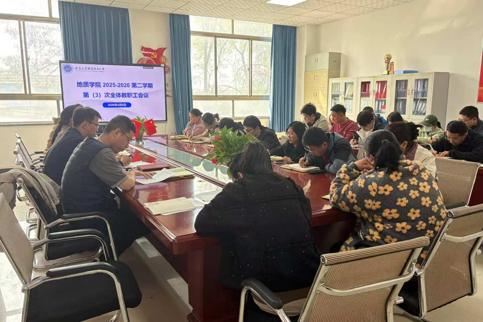 4月9日,地质学院在实训楼党建活动室召开全体教职工会议,安排部署4月份重点工作。