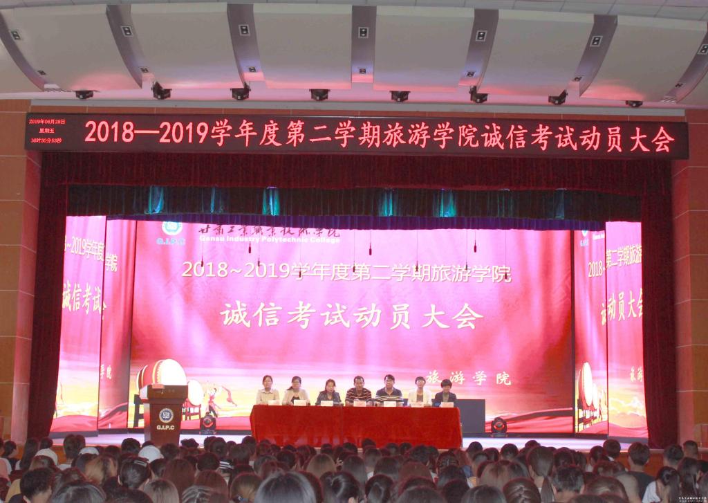 为强化学生诚信教育,进一步加强学风建设,规范考试管理,严肃考风考纪,树立良好的教风、学风、考风,确保考试工作科学、规范、有序进行,6月28日,旅游学院在大学生活动中心举行了2018—2019学年度第二学期诚信考试动员大会。旅游学院党支部书记张仲祥,学院副院长李玉林、曹瑞琴,各专业主任及旅游学院师生900余人参加。