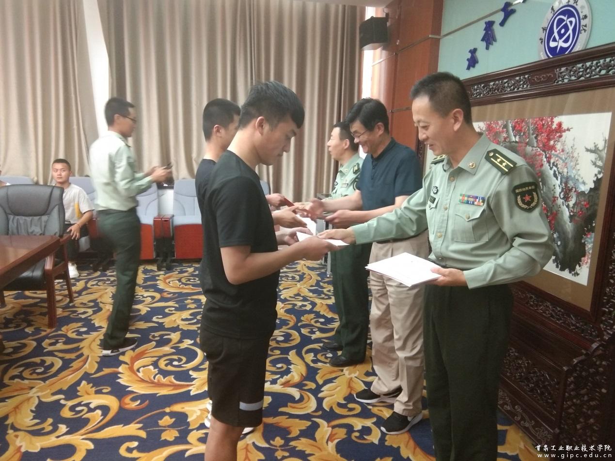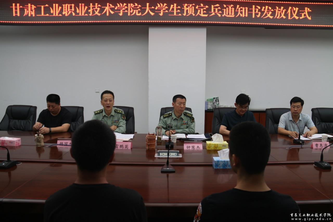 麦积区武装部领导和学校领导双方共同为通过2019年初检和政审的30名大学生颁发了大学生预征通知书,雷鹏英副部长对预征同学表示热烈祝贺,希望同学们保持良好的学习和作息习惯,以饱满的精神状态和良好的身体状态顺利通过复检,参军入伍,报效祖国。